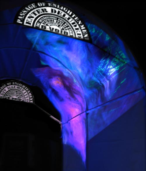D-Void: Passage of Enlightenment is an interactive video passageway that, when activated, takes the participant through a series of animation and audio sequences that attempt to indoctrinate the subject into emptying their minds of beliefs and embrace the void, nothingness. |
