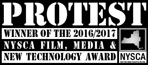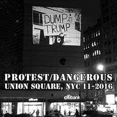 Protest is an ongoing series of installations/performances/videos featuring footage shot at many protests in New York City, started in 2003 with the massive anti-war rallies in advance of the Iraq war. More recently, Occupy Wall St, Black Lives Matter and the Anti-Trump protests. This page comprises just the Trump protest elements. |