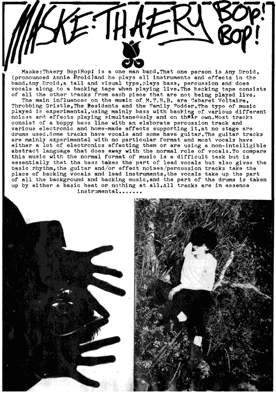The first solo musical endeavors were performed using the name "Maske:Thaery Bop! Bop!" (1981-84).
