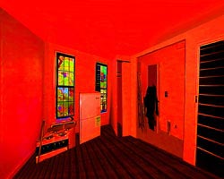 windows are blacked out). Digitally collaged