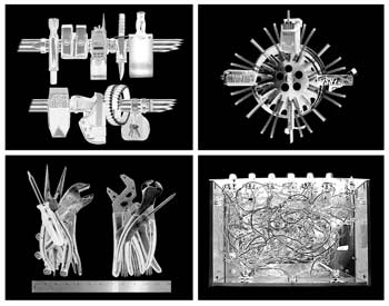 laser printed on acetate and laminated onto aluminum foil on plexiglass