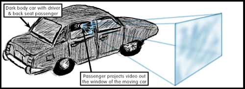 will then be projected from the moving car by a brighter