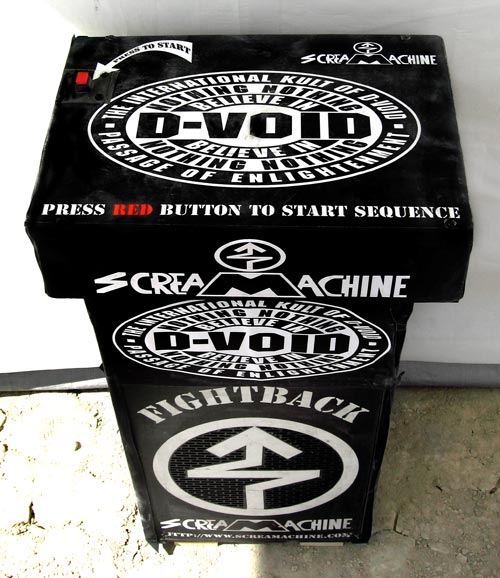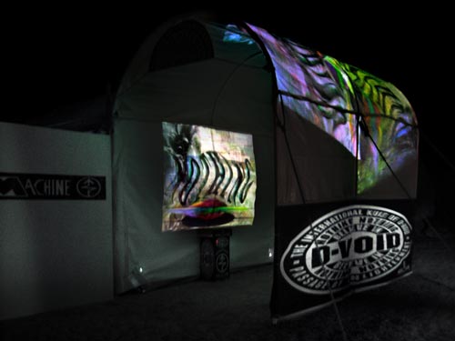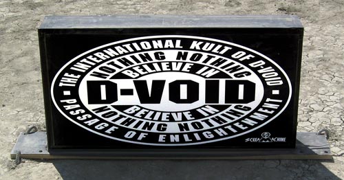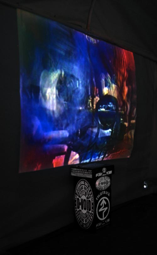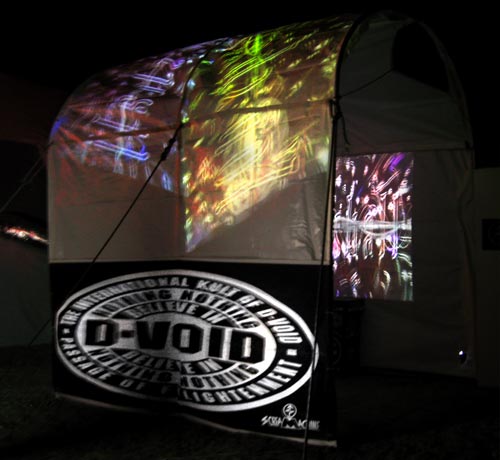 D-Void: Passage of Enlightenment is an interactive video passageway that, when activated, takes the participant through a series of animation and audio sequences that attempt to indoctrinate the subject into emptying their minds of beliefs and embrace the void, nothingness. |