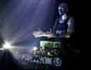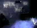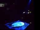 After viewing this performance, a number of audience members independently commented that the performer "looked like God creating the universe". With the performer in the center of his synthetic environment, controlling and sustaining it, it is, of course, natural and fitting to read the performer as God (as any artist is God of the landscape/environment they create). What makes that reading all the more interesting is that this ‘God’ has created a universe/product that celebrates godlessness. As such, the piece is a mystical experience that defies mysticism. The motions of the performer — due to their interactive nature and the stimulus-response interaction between video content and performer, and also due to the not-touching-anything-but-air nature of the Theremin interface — conjure up images of druids or witches reciting spells over boiling cauldrons (especially as the ‘smoke’ rises through the projector beams surrounding the performer) or, indeed, many classic images of God creating the world. The performer seems to pull the sounds and images out of the ‘ether’. He is animated in concert with his technological cauldron and the resultant expanding and contracting ephemeral environment. It is appropriate that a ‘totality’ decipherable on mystical terms should emerge out of the combination of non-mystical elements; this is central to the notion put forth (by Nothing) that the mystical nature of the real universe is accidental and imposed on it by the thought processes of mankind. The idea of preaching or demonstrating a doctrine, as performed by most religions through ritual, is paralleled by Nothing and heightened by the use of the voice of the classic mesmerist Svengali. The sampled phrases, hypnotic and repetitive, fixed on delivering the message about the lack of sentient causation in our perceived world, are like ritual phrases reiterated by church goers and other ritual participants, but unlike these, they do not serve to uphold the beliefs of God doctrines, rather they undermine all including themselves. Similarly the title - Nothing – and the projections of the word ‘NOTHING’ highlight the essential paradox of the piece, they have substance and meaning while denying both.