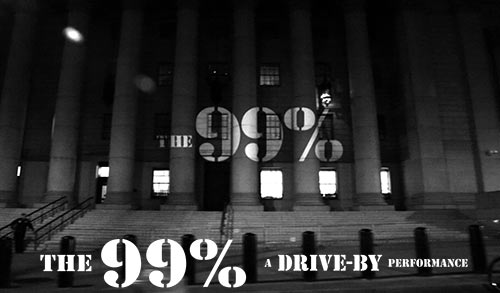 screaMachine takes its "The 99%" series of semi-animated Occupy Wall St protest movies back to the streets of New York's financial district in this latest incarnation of the "Drive-By" series of mobile street projections started in the late 1990's