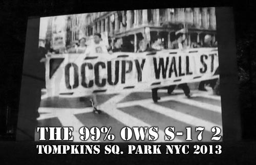 screaMachine takes its "The 99%" series of semi-animated Occupy Wall St protest movies to Tompkins Square Park, NYC, for the 2nd Anniversary of the Occupy Wall Street movement: S-17 2